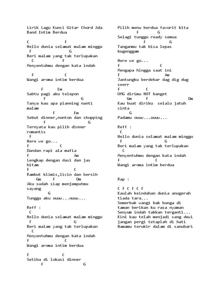 Tapi anggur dan lagu seperti musim semuanya telah pergi. Apa pun kata mereka. Artikel ini telah tayang di TribunManadocoid dengan judul CHORD dan Lirik Lagu.